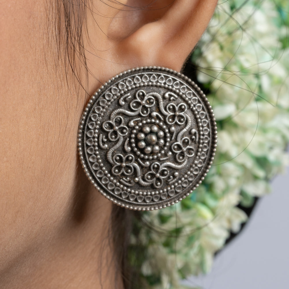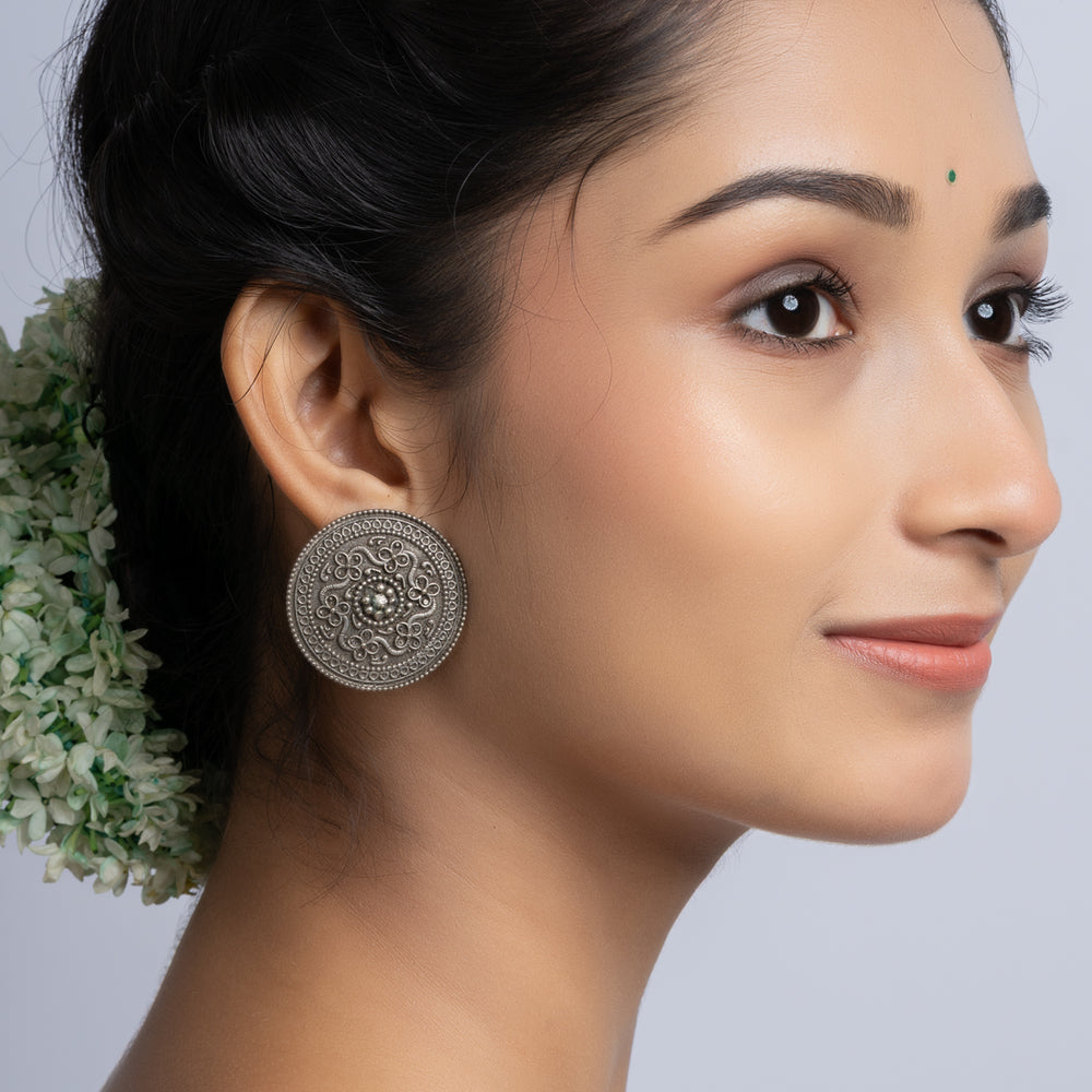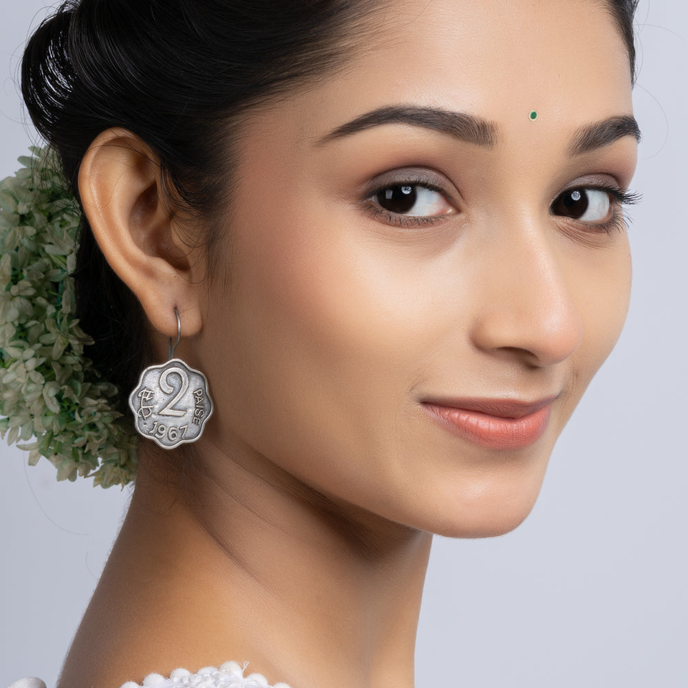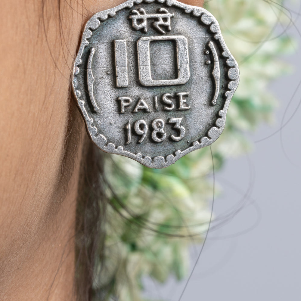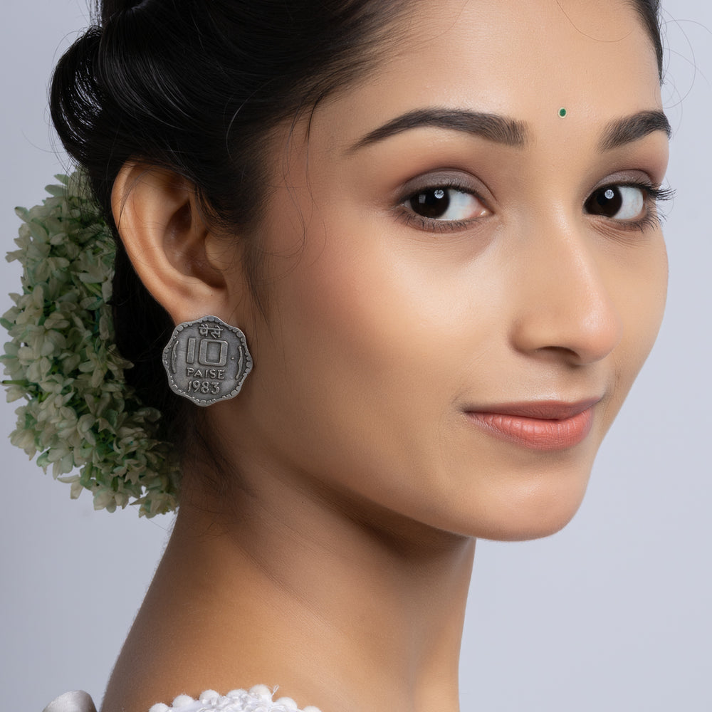Add Oxidized Silver Ten Paise Stud Earring to the cart