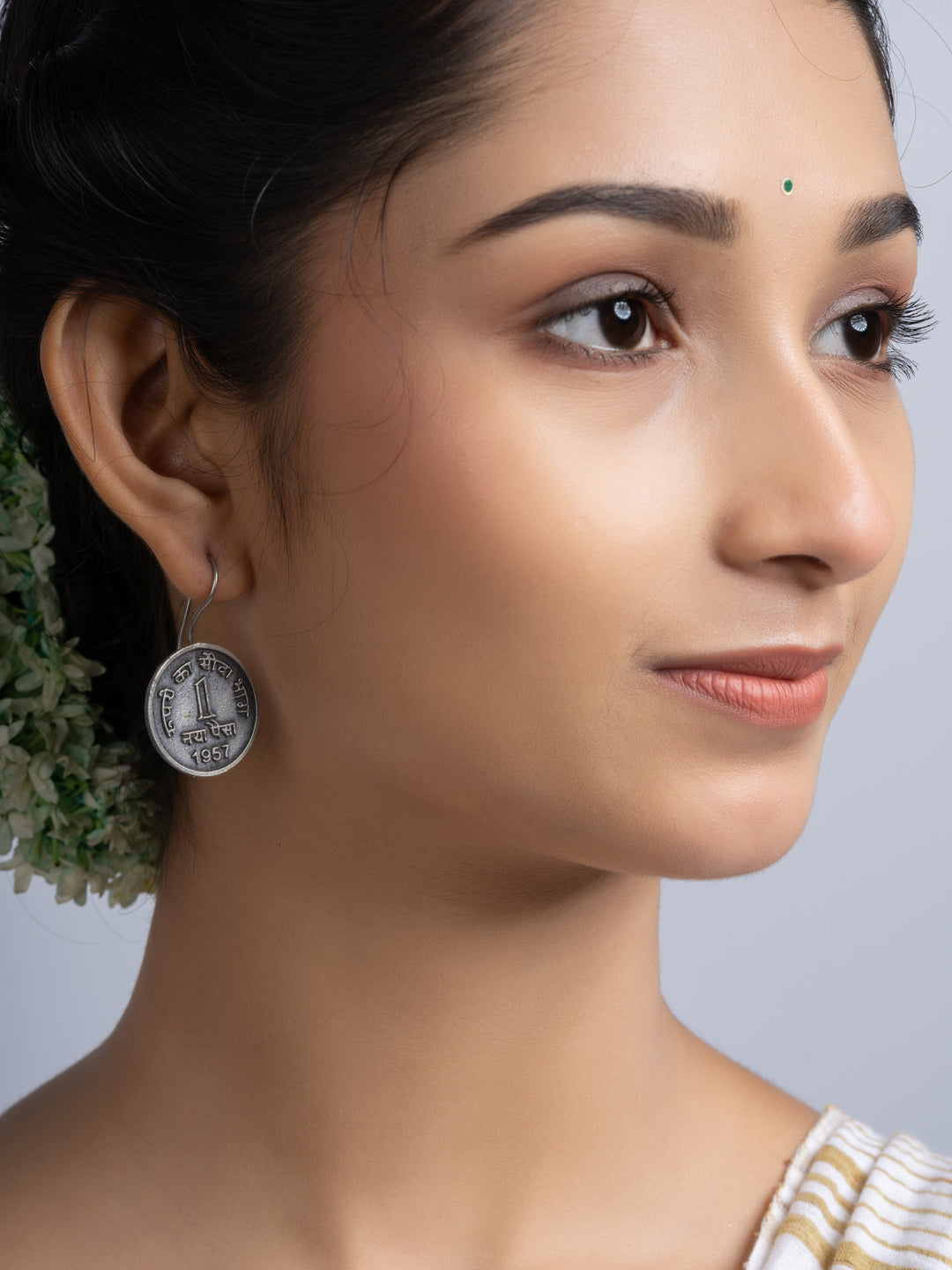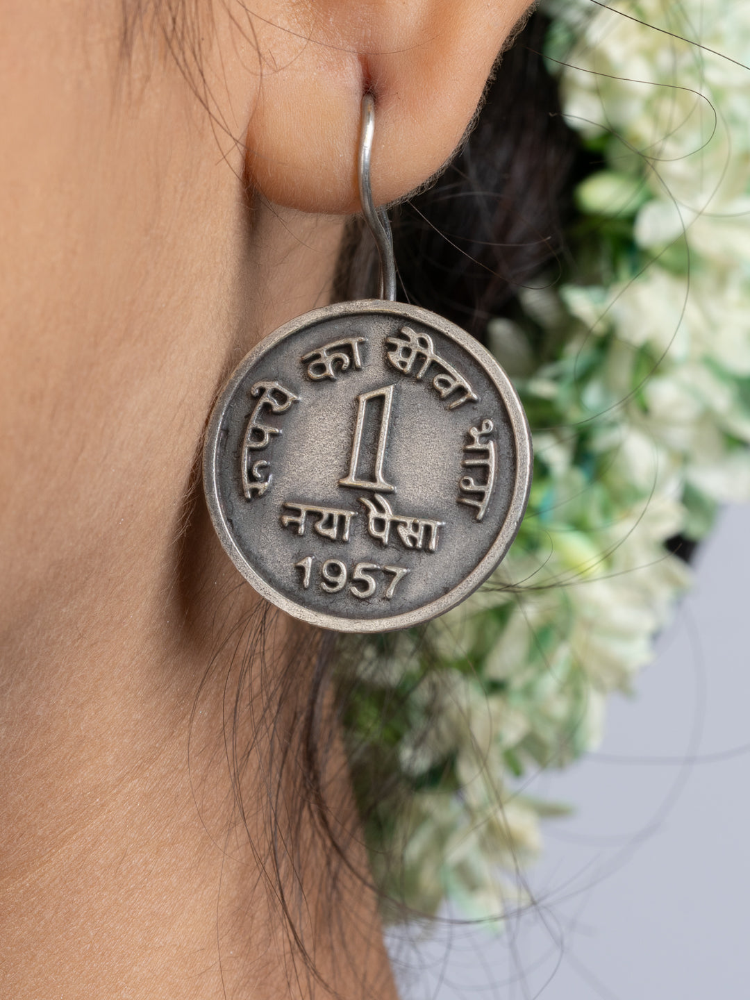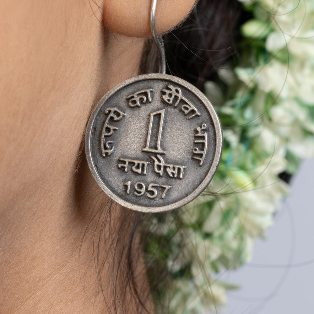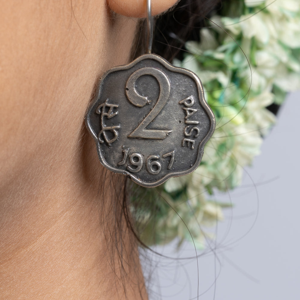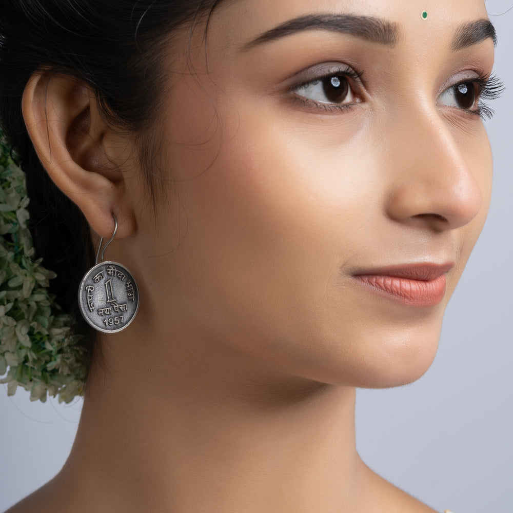 Add Oxidized Silver Ten Paise Stud Earring to the cart