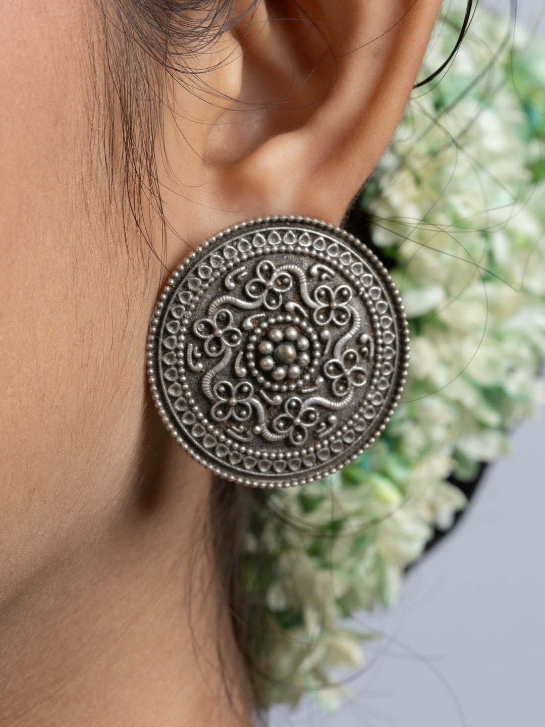 Add Oxidized Silver Floral Stud Earring to the cart