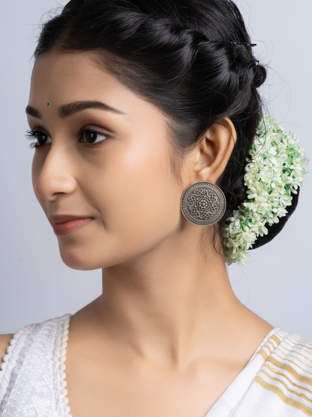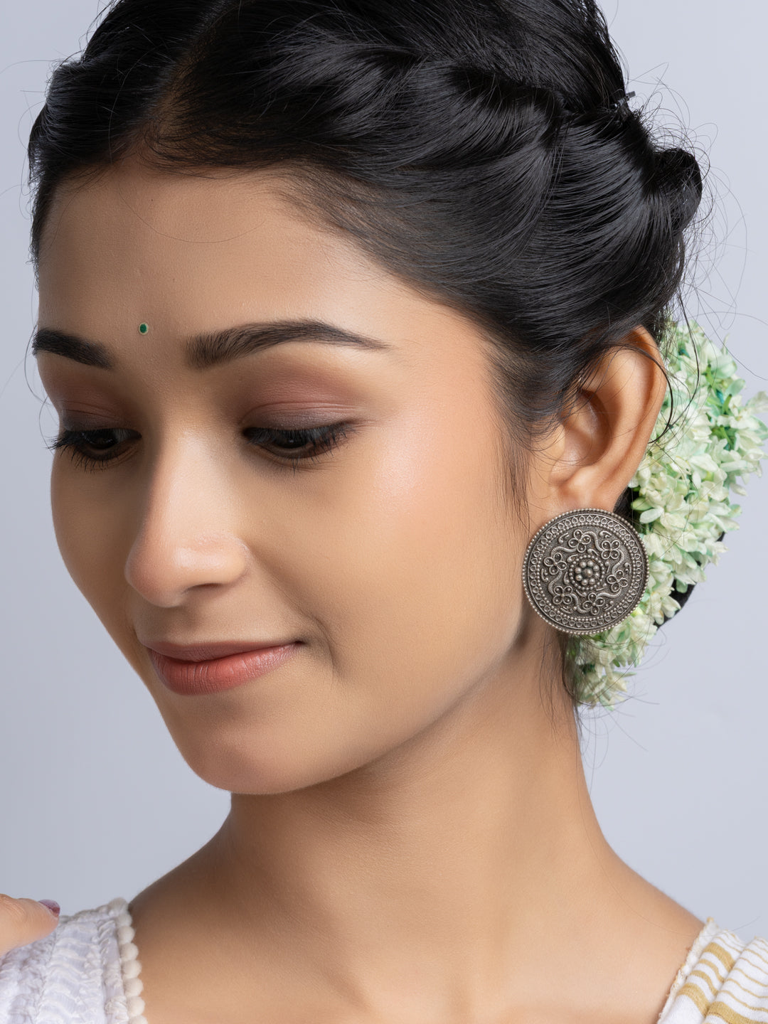 Oxidized Silver Floral Stud Earring