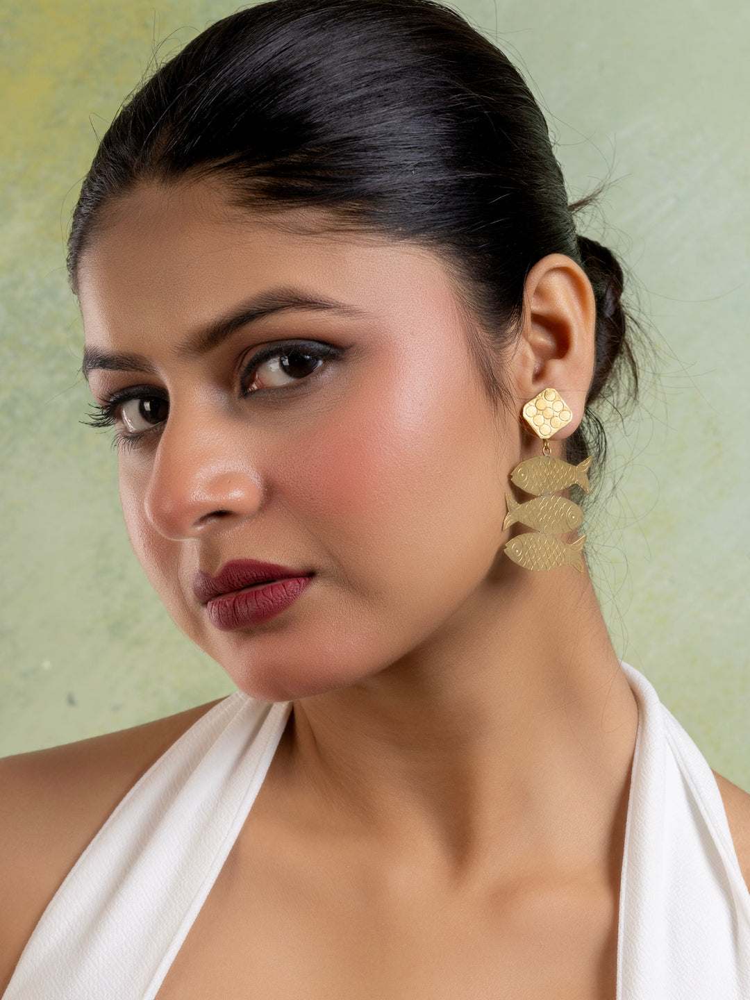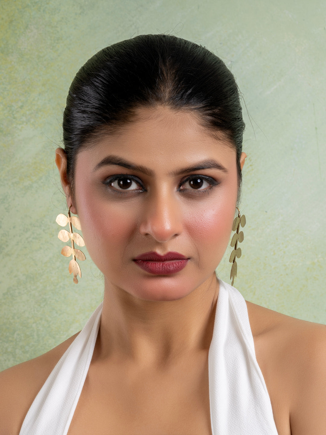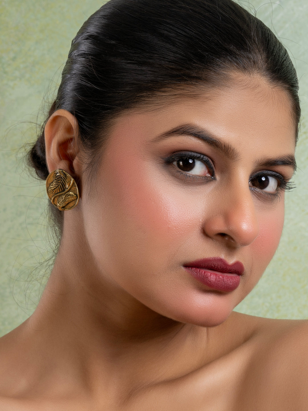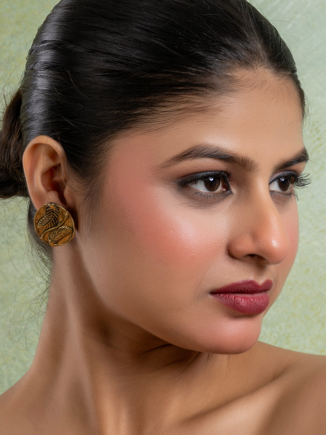 Add Golden Brass Oval Leaf Stud Earring to the cart