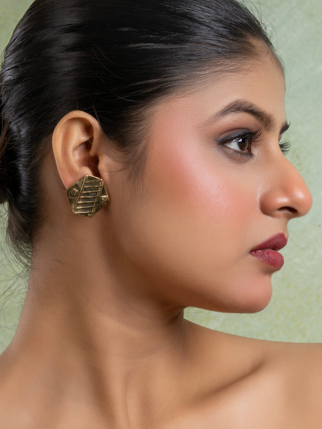 Add Golden Brass Hexagonal Stud Earring to the cart