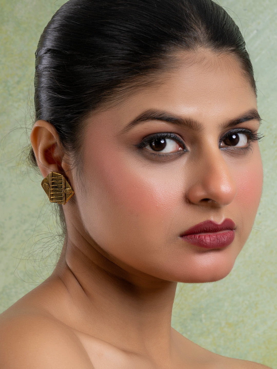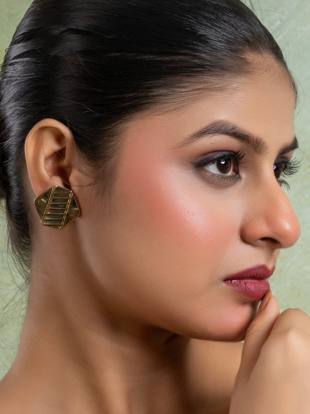 Golden Brass Hexagonal Stud Earring