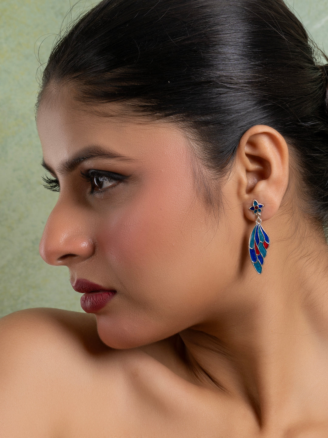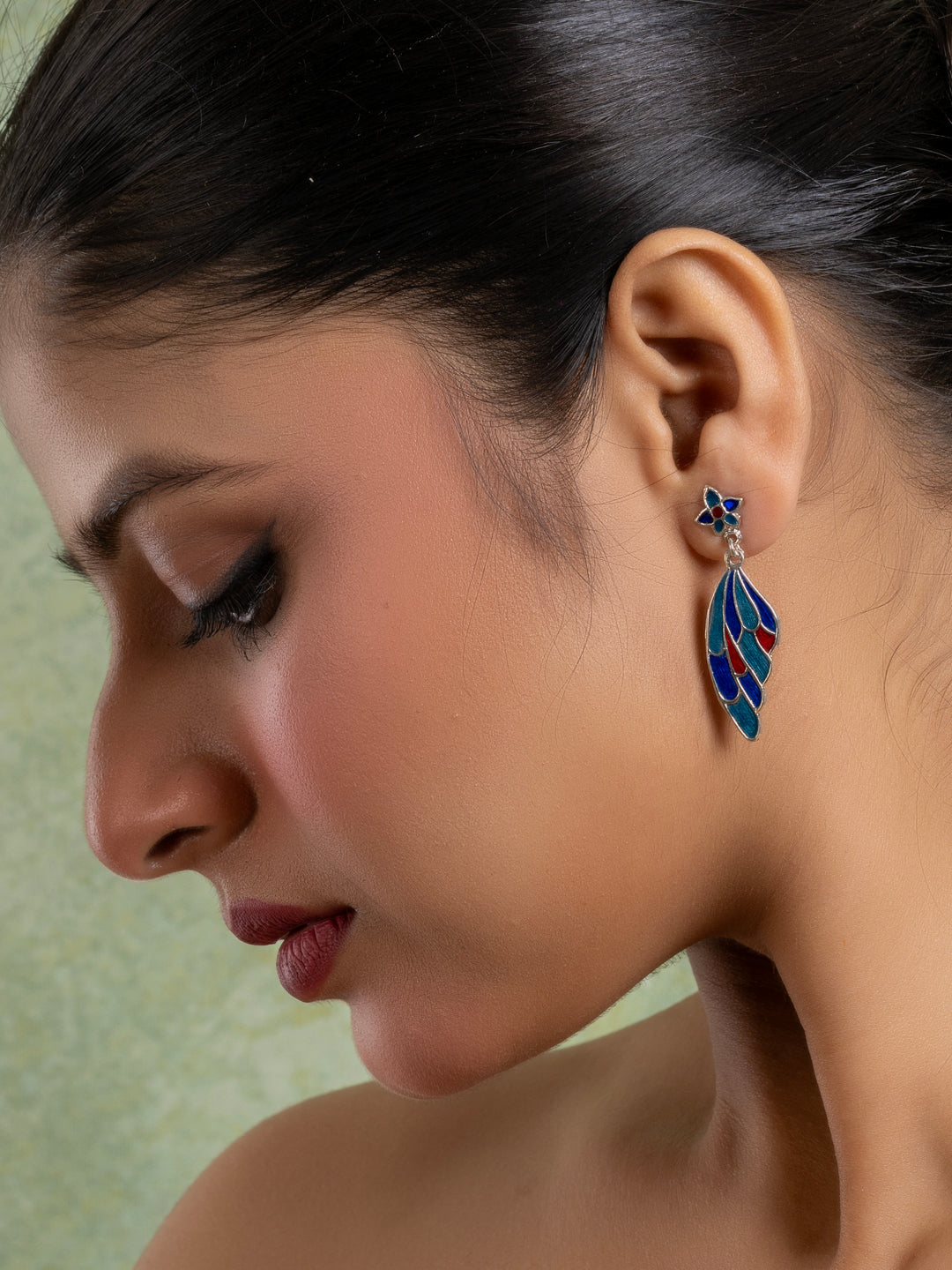 Embrace elegance and heritage with our Vibrant Red Blue Meenakari Bird Earrings, and let your style soar!