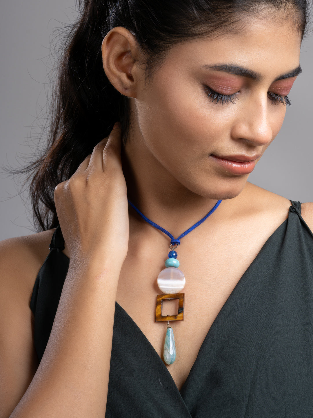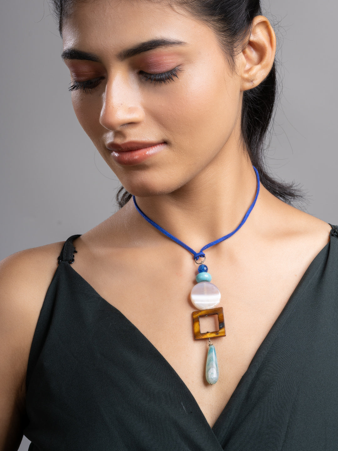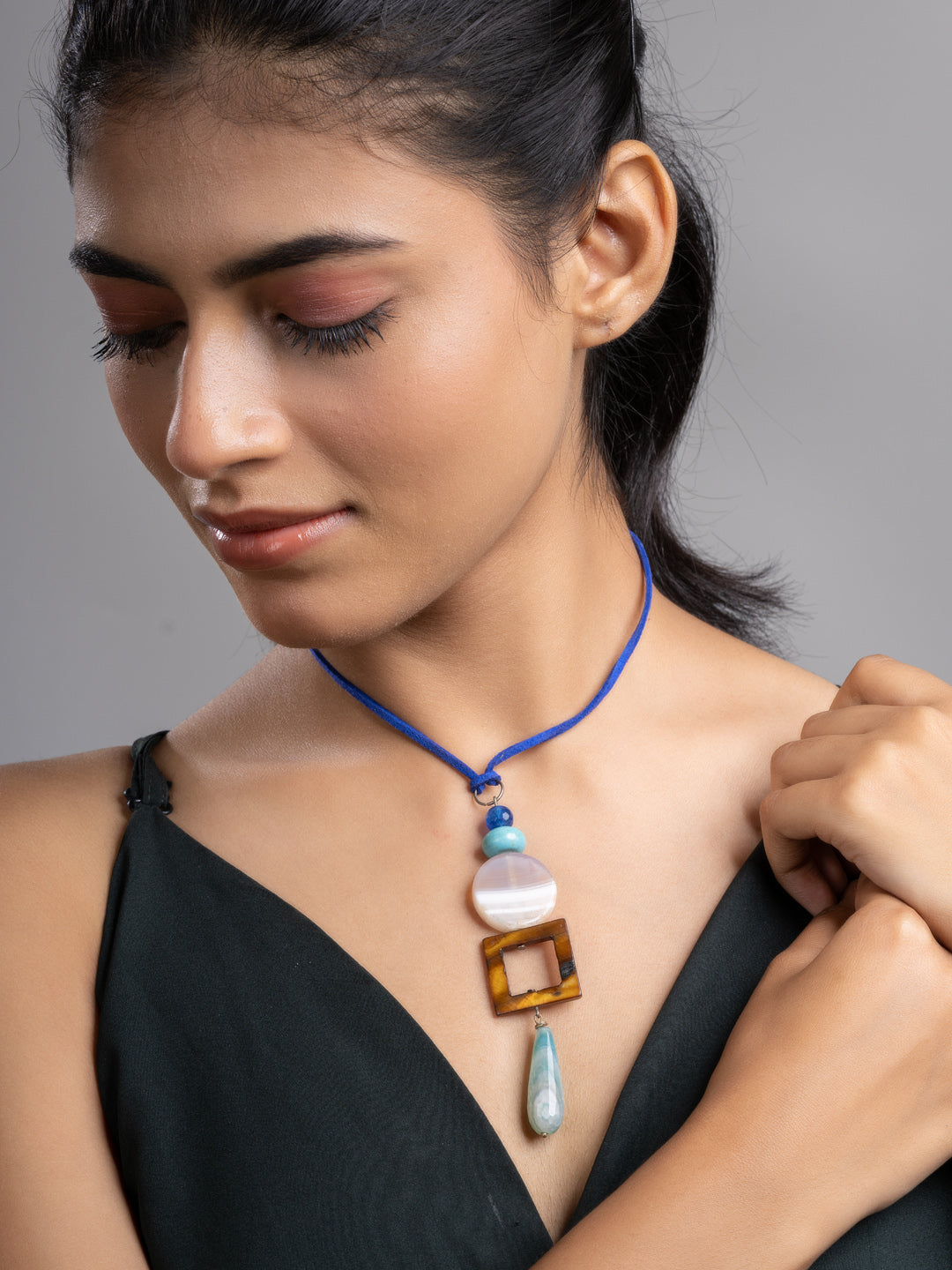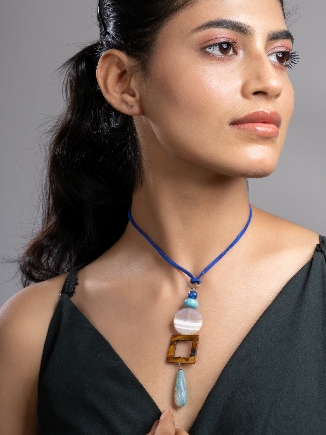 Pink White Brown Blue Onyx Agate Mother Of Pearl Turquoise Sleek Necklace With Adjustable Suede Cord