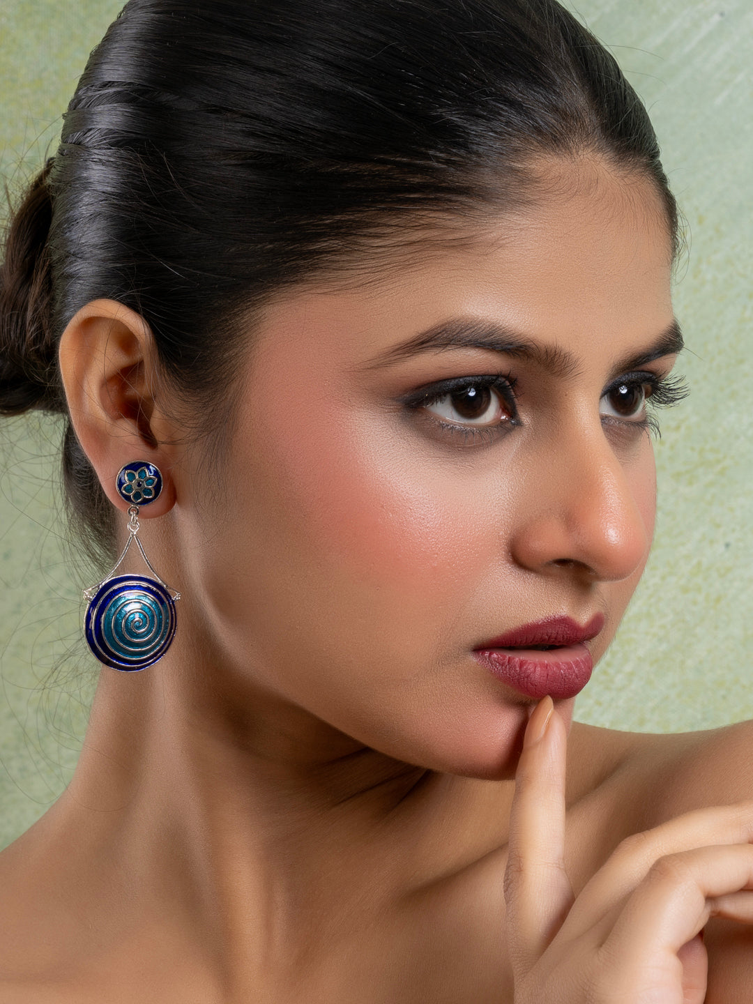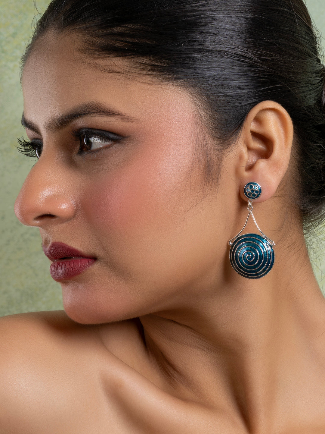 Add Turquoise Blue Floral Meenakari Enamel Jhumka Earring to the cart