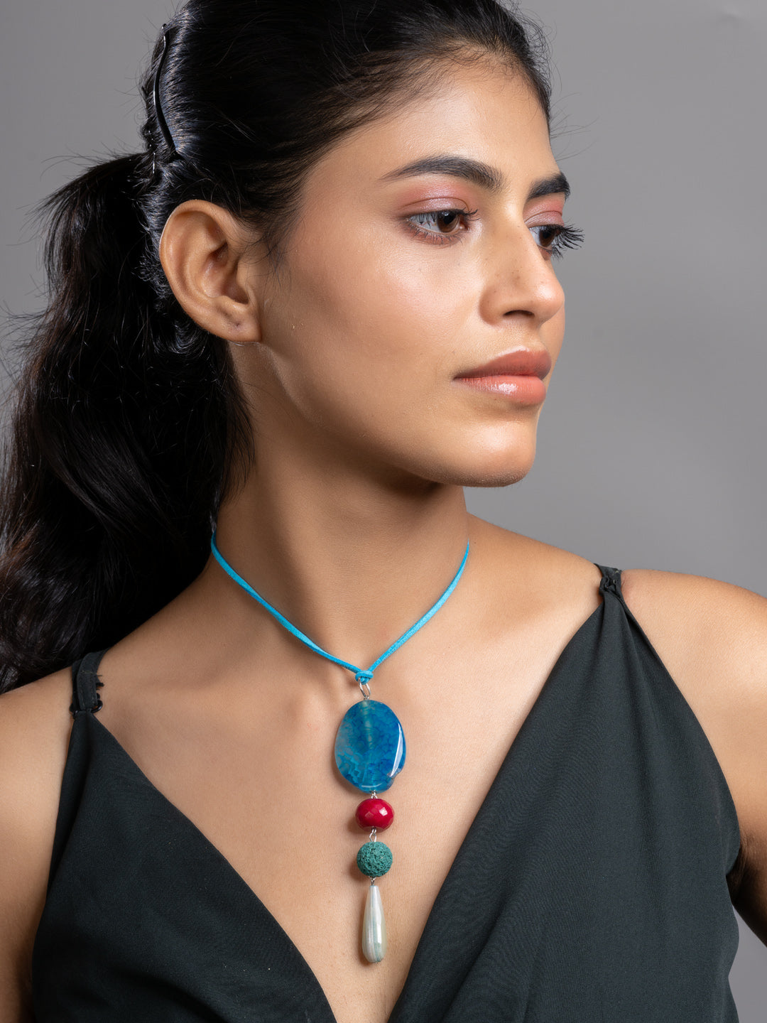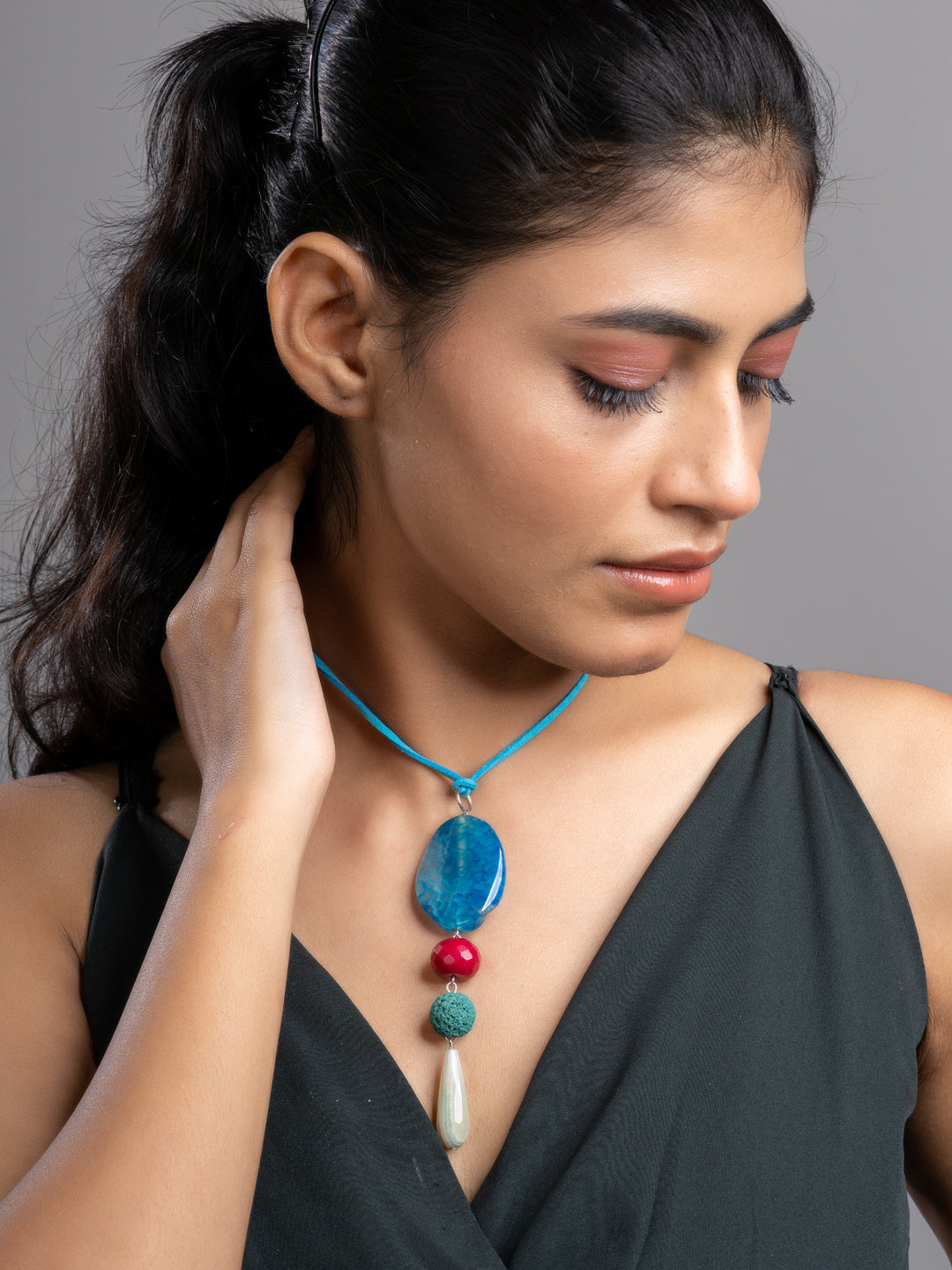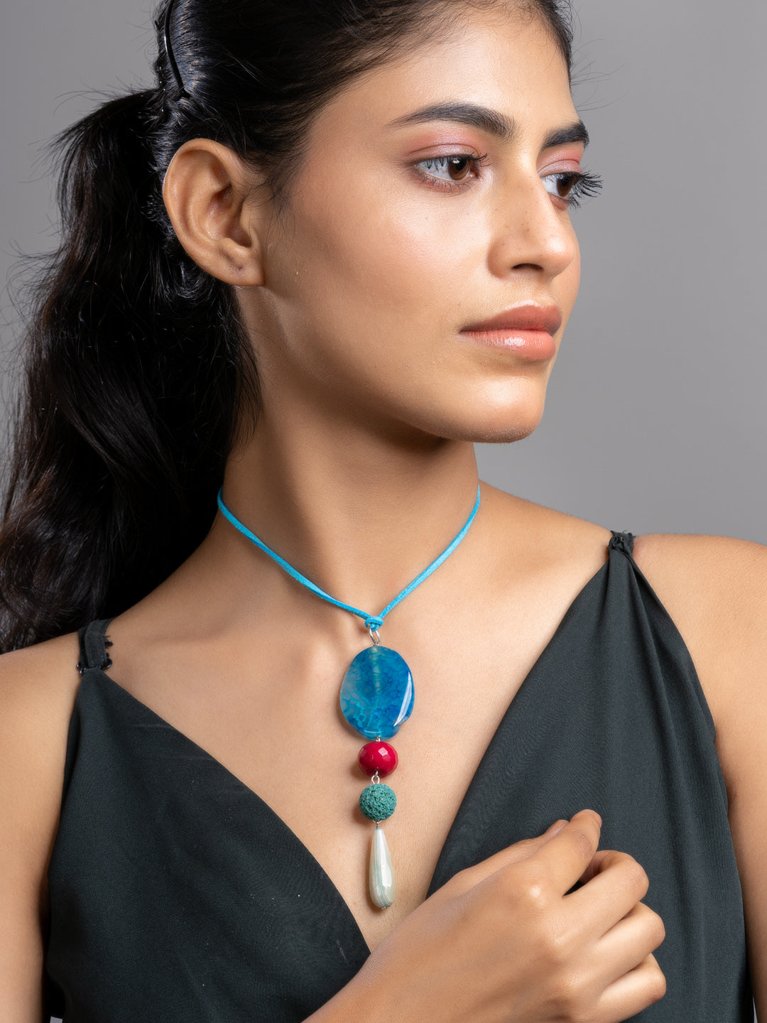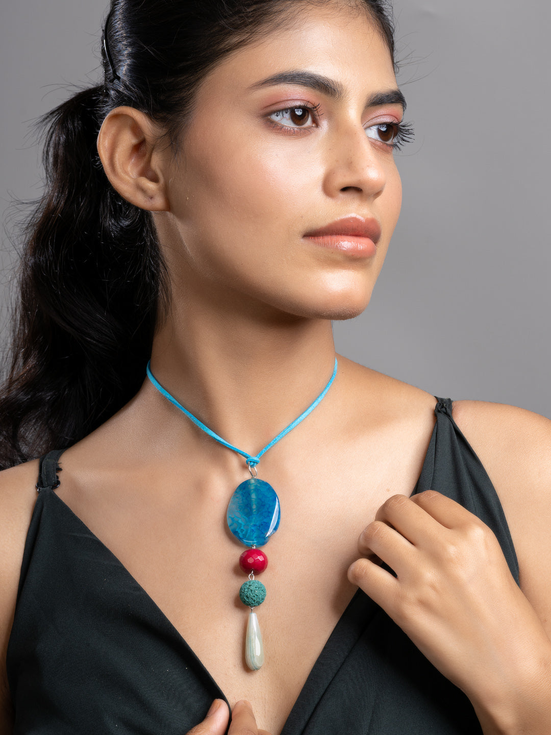 Pink Blue Green Onyx Agate Lava Sleek Necklace With Adjustable Suede Cord
