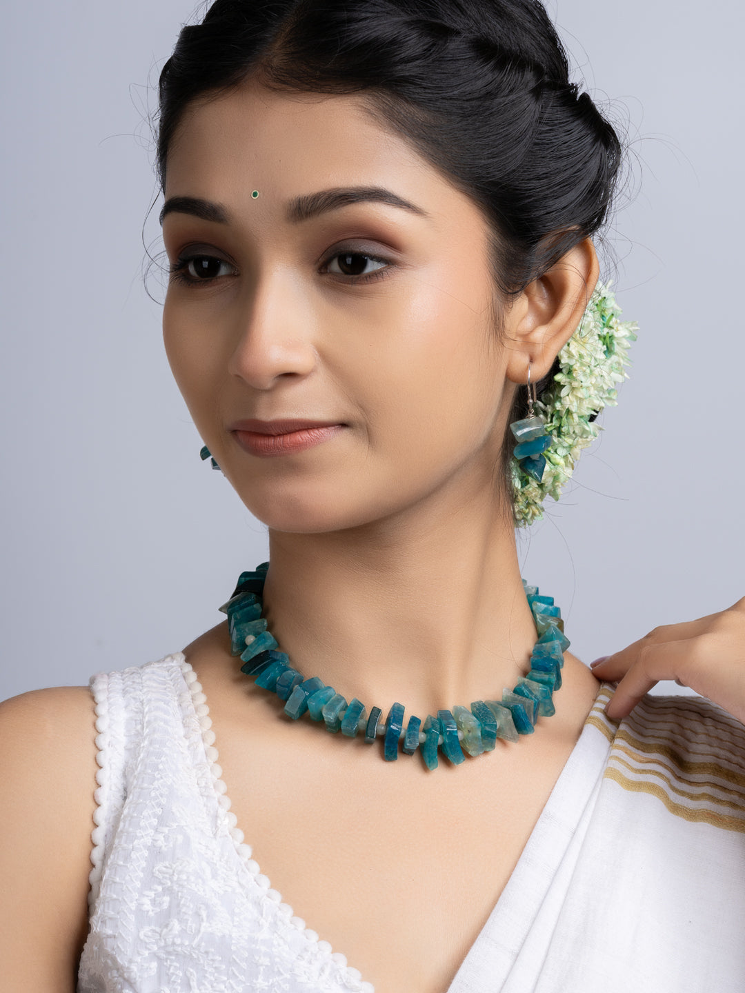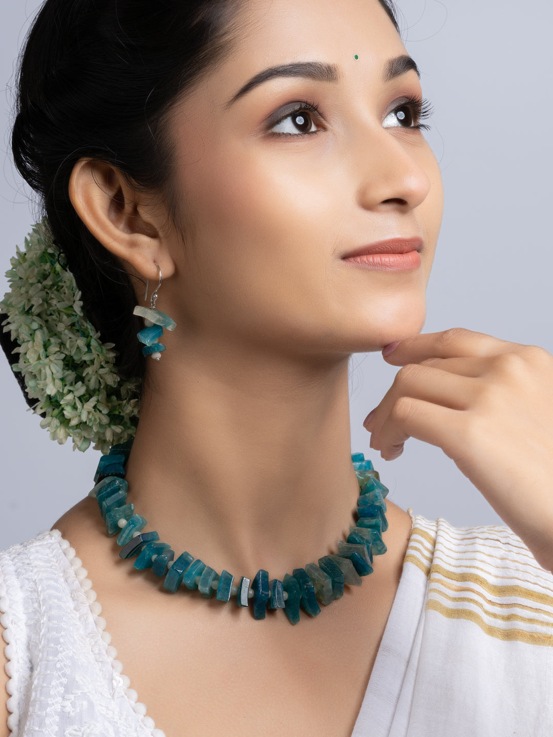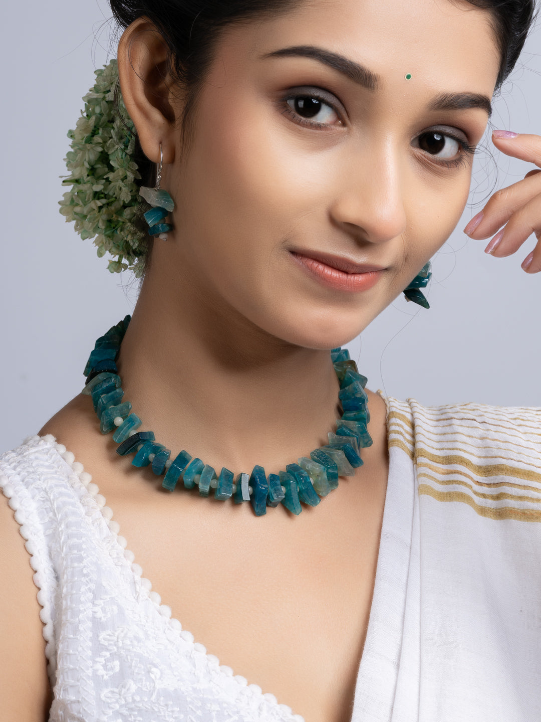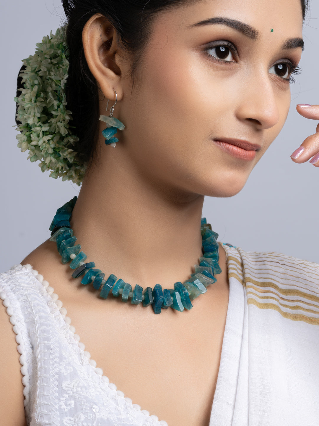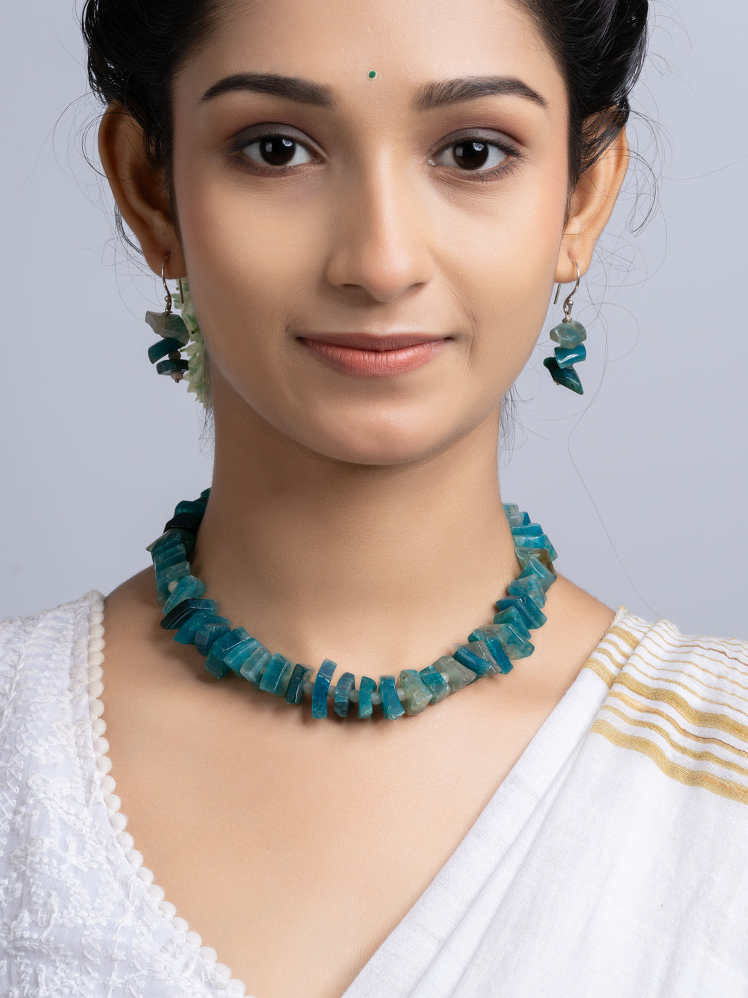 The set includes matching earrings. Both items blend traditional design with modern flair. The semi precious stones necklace is suitable for wedding, events, parties, or casual wear. You get versatility and standout style in one package. The design ensures comfort all day long. The secure clasp keeps the necklace in place.