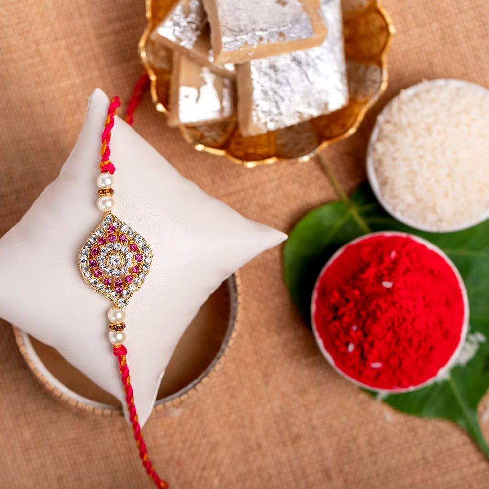 Add Handmade Designer Pearl Rakhi With Roli And Chawal - Traditional Craftsmanship For Raksha Bandhan to the cart