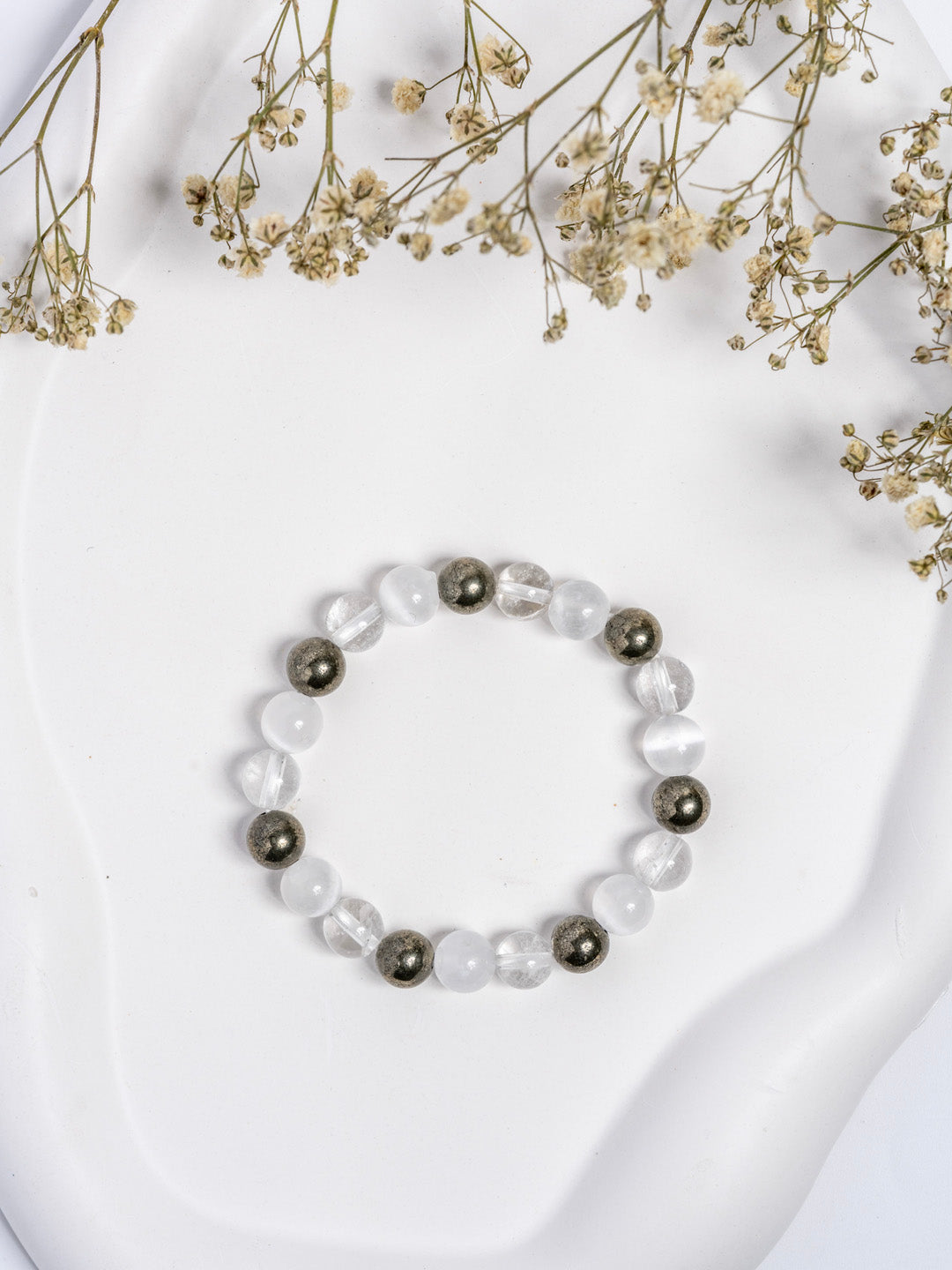 Super Pyrite & Clear Quartz with Selenite Self Recharge Raj Yog Bracelet